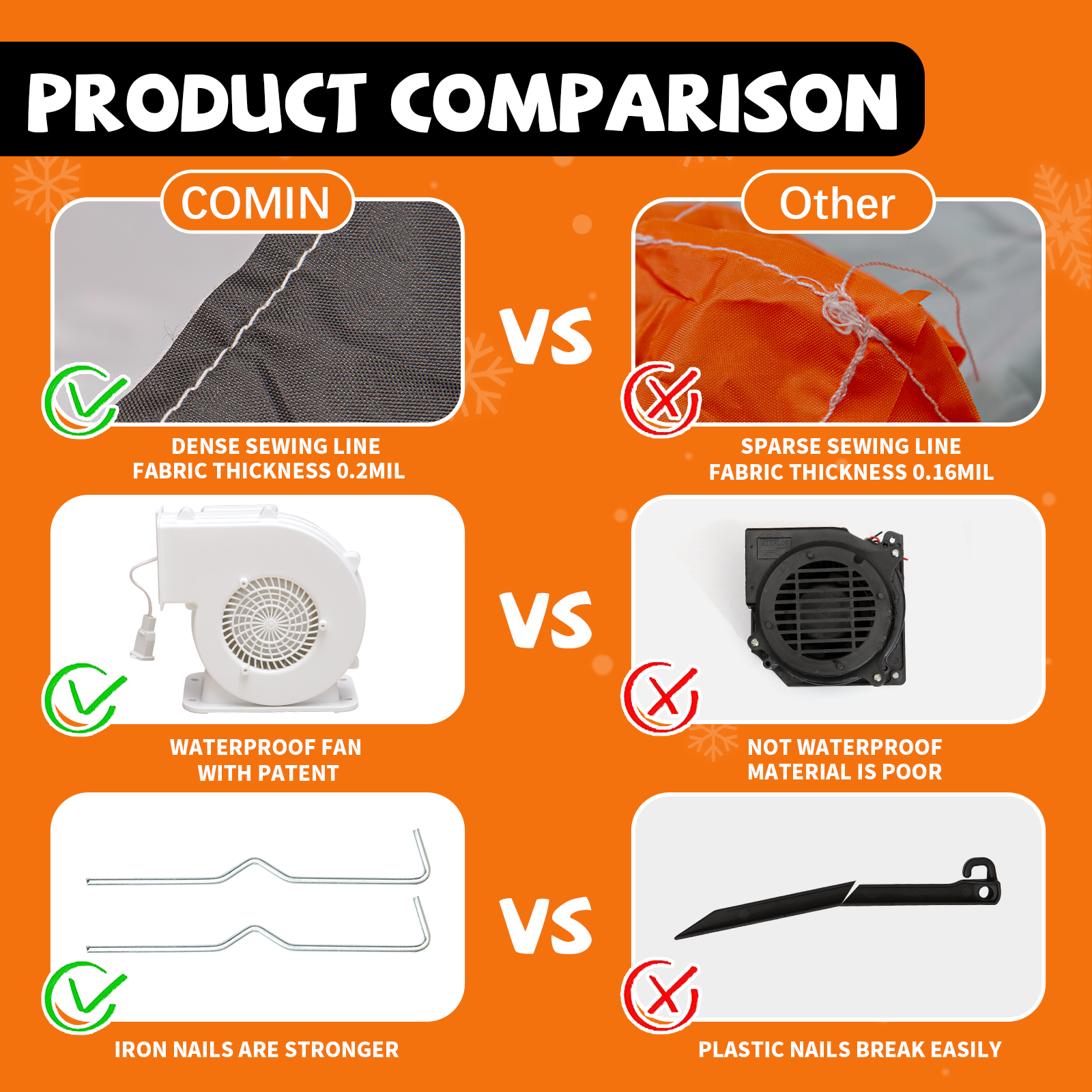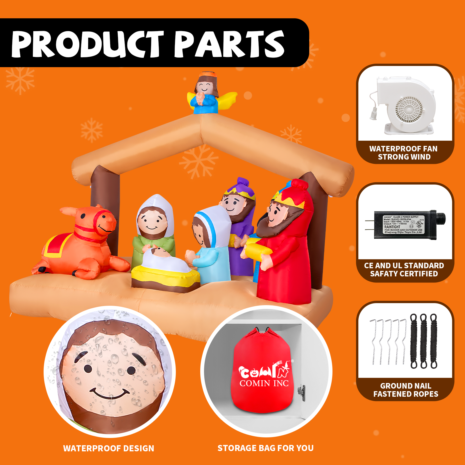 - ⛄ 【PREMIUM QUALITY】 - CE and UL standard safety certified adapter to use on our christmas inflatables. Since the powerful built-in fans and bottom zipper of COMIN Inflatable Decor, it's easy to inflate and deflate in a minute