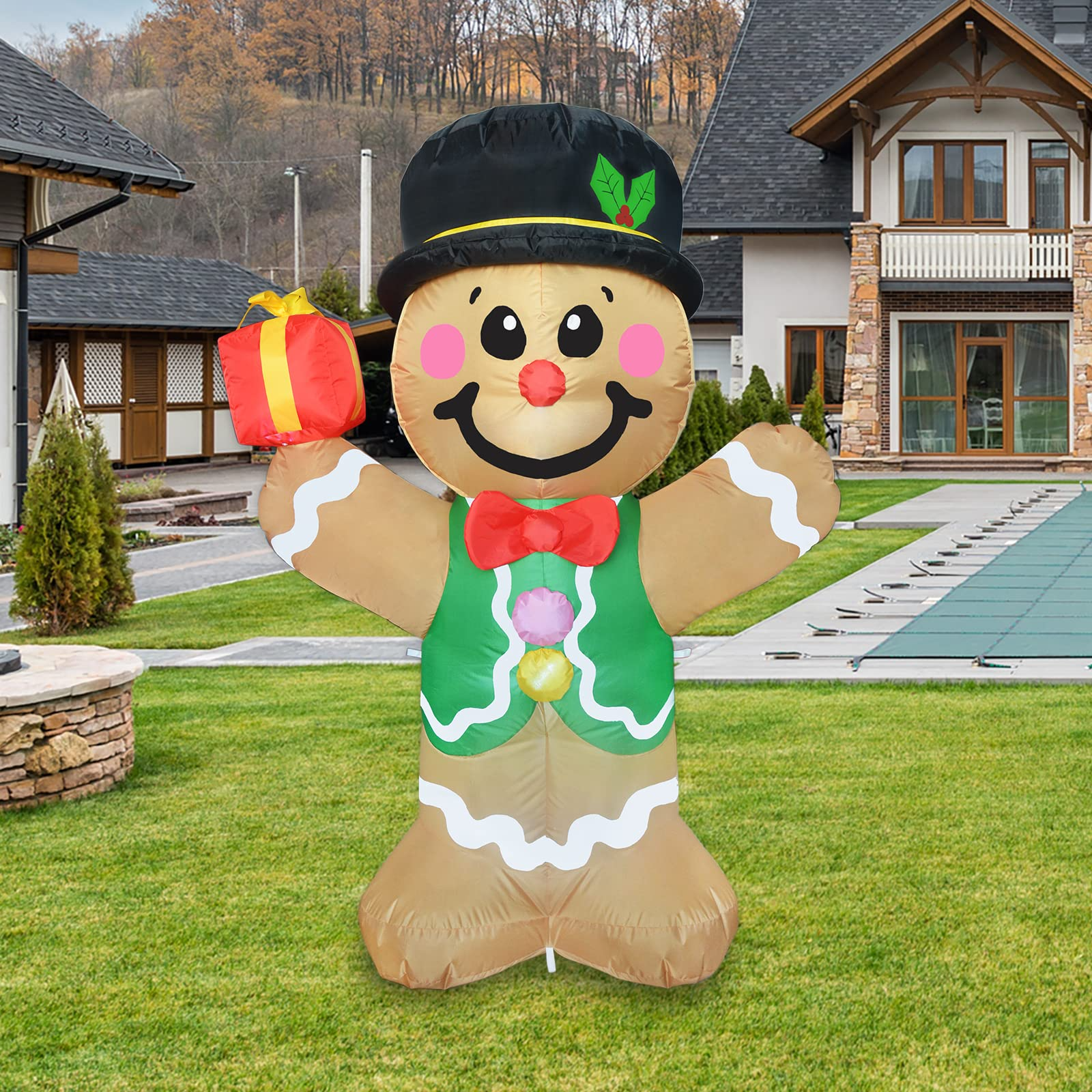 - Cute Appearance Design:GOOSH Christmas inflatable Gingerbread Man Cookie come with LED lights built inside. This Gingerbread Man Cookie inflatable made people’s love at first sight. Beside Christmas, it can be used as any other holiday decoration. Installed in the courtyard to enjoy holiday with your family and spreading a happiness atmosphere to your neighborhoods.