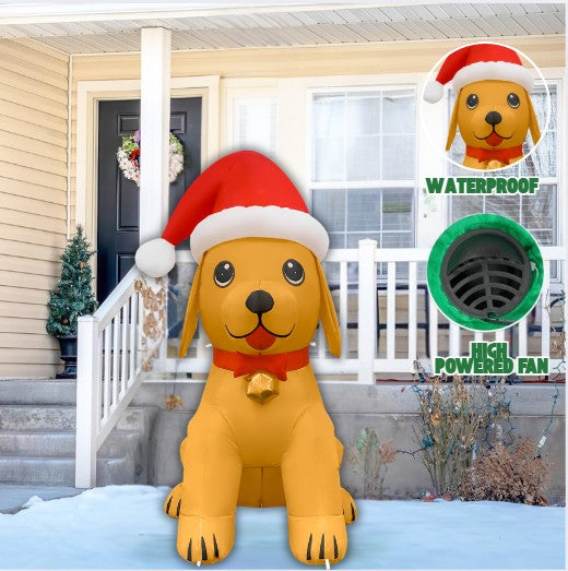 GOOSH 5.2FT Christmas Golden Puppy Inflatable with Santa Hat and LED Lights