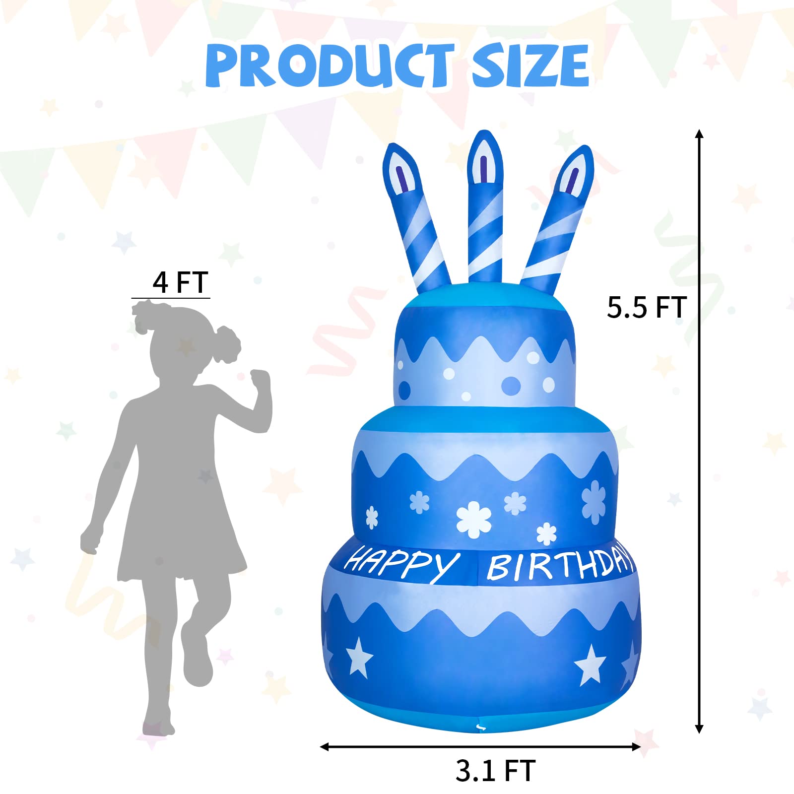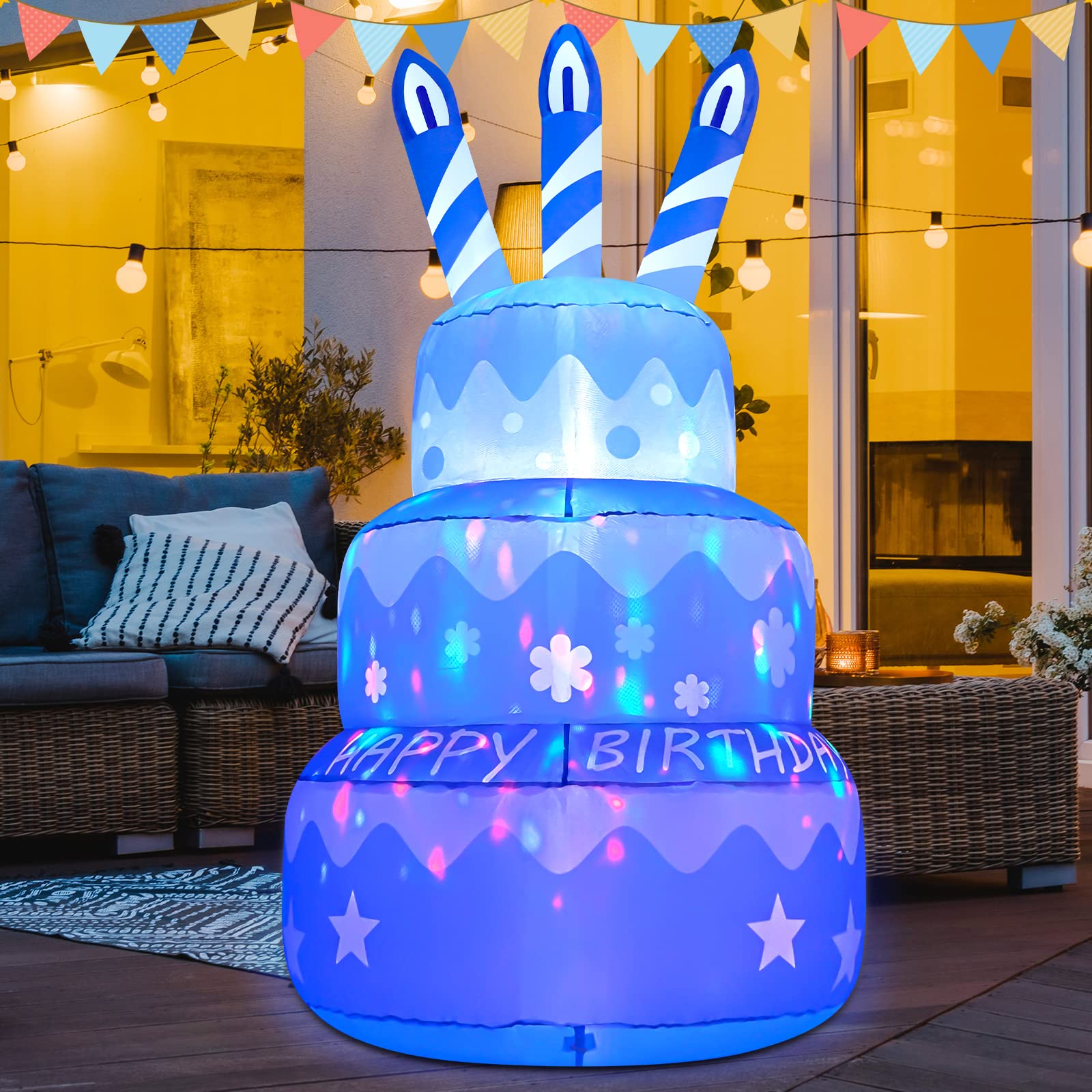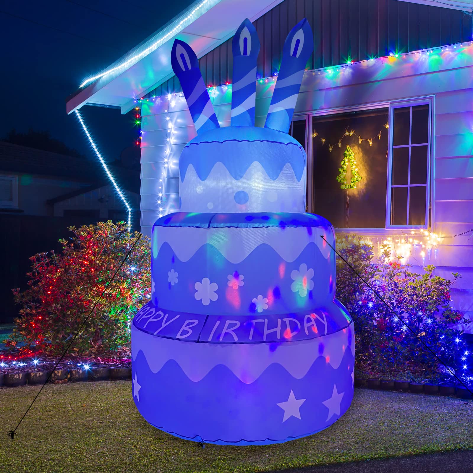 - Celebrate Your Birthday: This is a inflatable birthday cake, topped with 8 candles, our colorful two-layer cake features a "Happy Birthday" sentiment. Put this cute birthday blow up in your yard or indoors and wish your loved one a HAPPY BIRTHDAY!