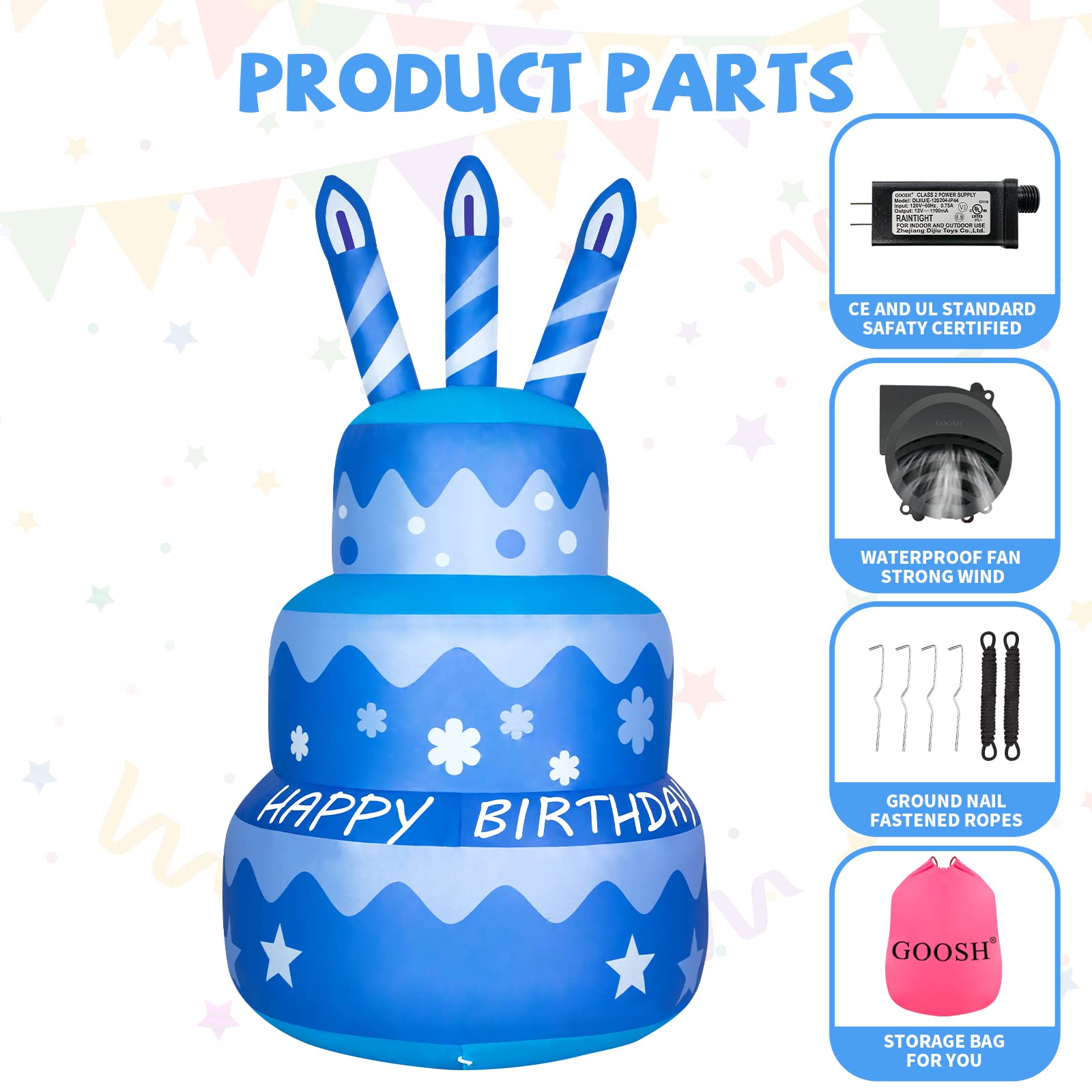 GOOSH Birthday Inflatables Outdoor Decorations Cake with Candle, Happy Birthday Blow Up Yard Decorations 5.5FT with Colorful Rotating LED Lights for Party Yard Garden Lawn (Blue)